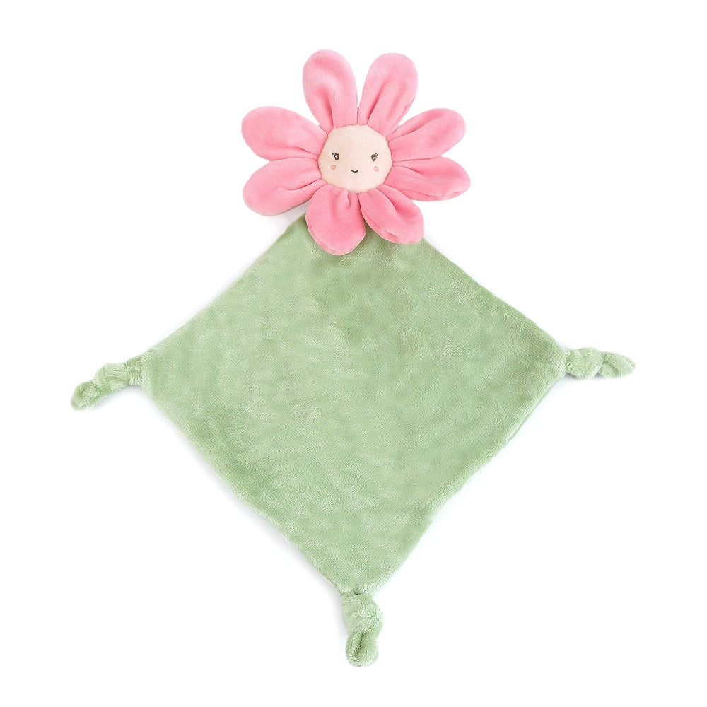 Petunia Flower Knotted Security Blanket-A Blooming Buddy! Wrap your little one in comfort and joy with our super soft velour Petunia Flower Knotted Security Blanket! This colorful and festive lovie is more than just a blanket, it's a cheerful friend with a plush Petunia flower attached at one corner, perfect for snuggles. The other three corners feature knotted fabric, offering a soothing tactile experience that helps babies self-soothe during naps or bedtime. Durable and machine washable, this whimsical blanket is made to handle all the cuddles, making it an unforgettable gift for baby showers or newborn celebrations. With its combination of softness and sensory fun, it's sure to become your little one's favorite snuggle companion!