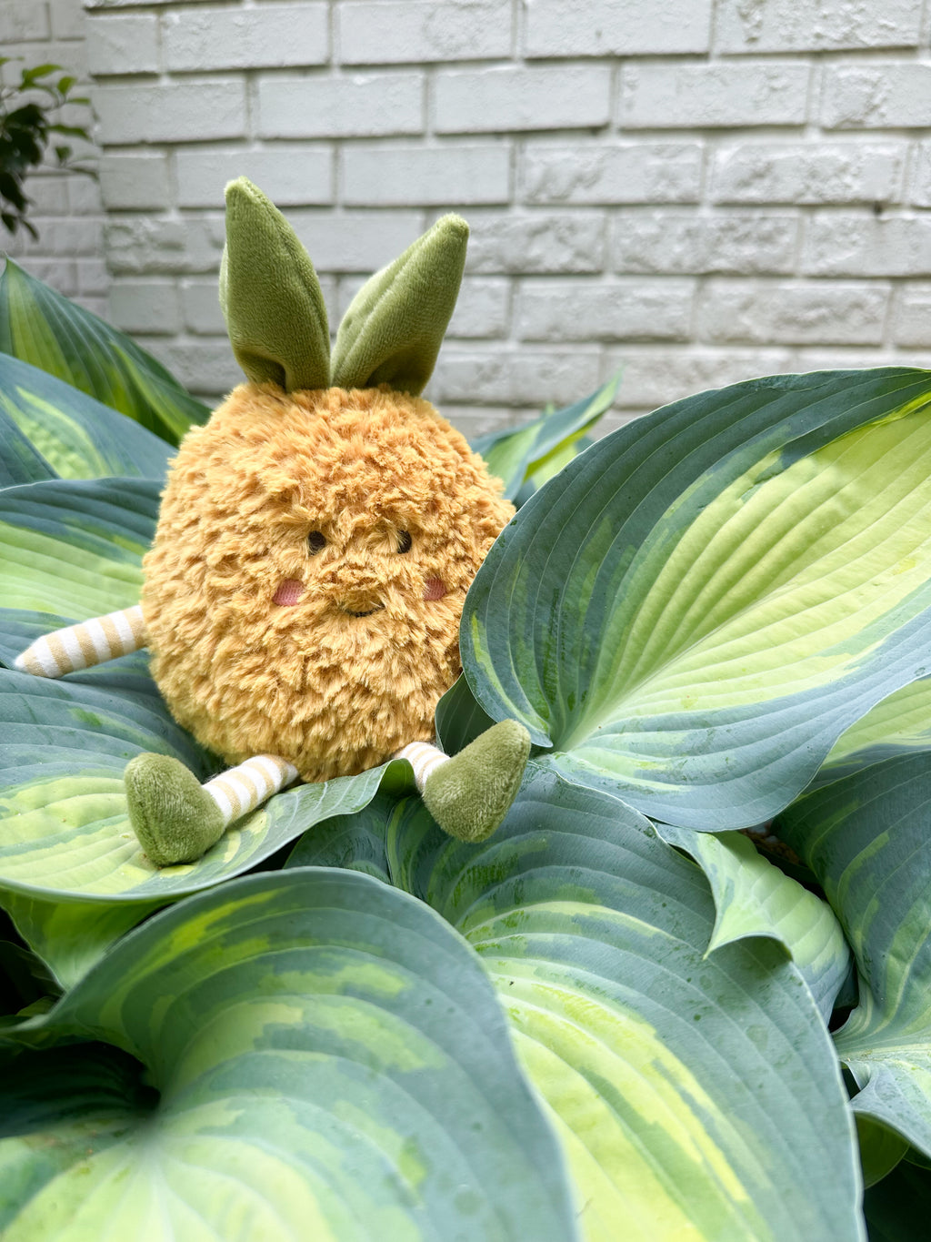 Meet Pina Pineapple Plush, a tropical treasure from our fruit-themed collection! With its sunny yellow textured fur, whimsical striped arms and legs, and plush green crown, Pina Pineapple invites your child to explore the enchanting world of produce. This delightful plush sparks their imagination and fills their days with smiles and joy. Whether perched on a shelf, accompanying them on imaginative adventures, or providing cozy snuggles, this plush pineapple is the perfect quirky gift for all ages!